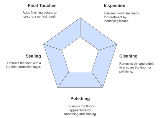 After polishing, we apply a durable sealant that is specifically designed for your floor type. This sealant provides optimal protection against wear and tear while enhancing the shine of your floors. Our sealing process ensures that your floors remain beautiful and protected for years to come.